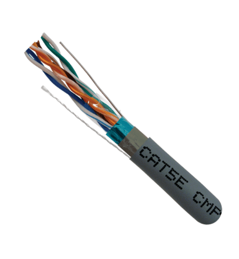 Cat5E Ethernet Cable 350MHz, 24AWG, STP, 4 Pairs, Solid Bare Copper, 1000ft. Plenum rated.
